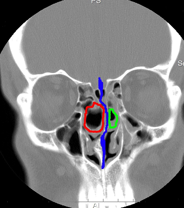 - The red illustrates a large polyp that has actually shifted my septum to the right.